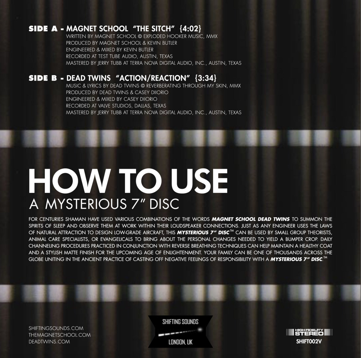 Shifting Sounds was started in London in 2009 and now has offices in Austin Texas USA, and Melbourne, Australia. Set up by musicians with industry knowledge with the aim of being a launching pad for talented musicians and bands, the goal of the label is to provide an ethical platform for bands to get off the ground. ... more